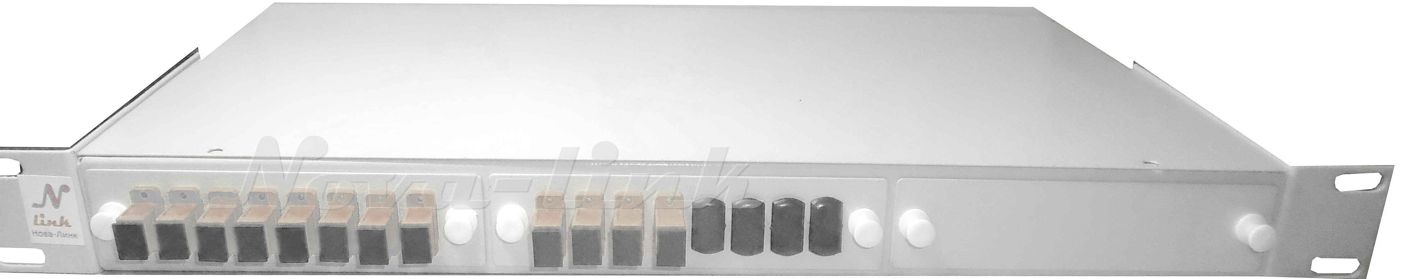 Кросс 12SCm52 оптический стоечный 19" 1U КРС-24 2х8 выдвижной, комплект: 12SC MM50 PC адаптеры, пиги, гильзы