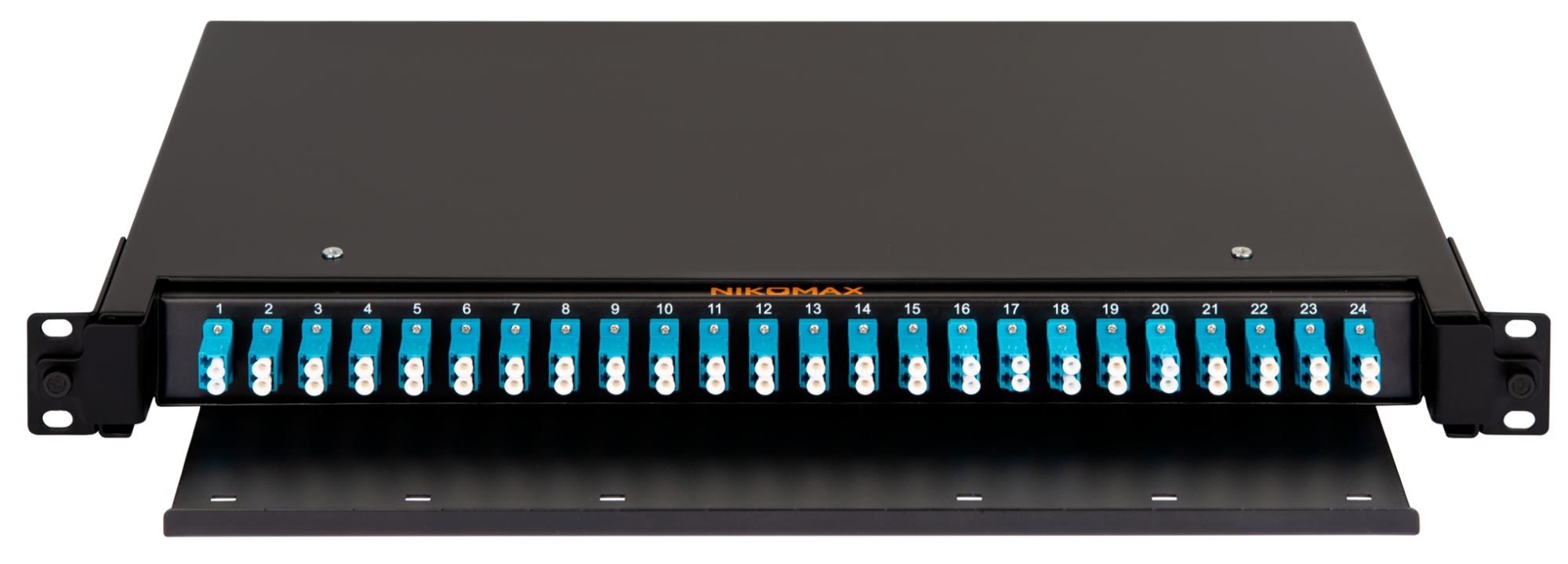 Кросс 48LCU оптический стоечный 19" 1U NMF-RP24SC-TS-P1-1U-BK 1х24, комплект: 48LC SM UPC адаптеры, пиги, гильзы, чёрный, NikoMax Premium Line NMF-RP48LCUS2-TS-P1-1U-BK