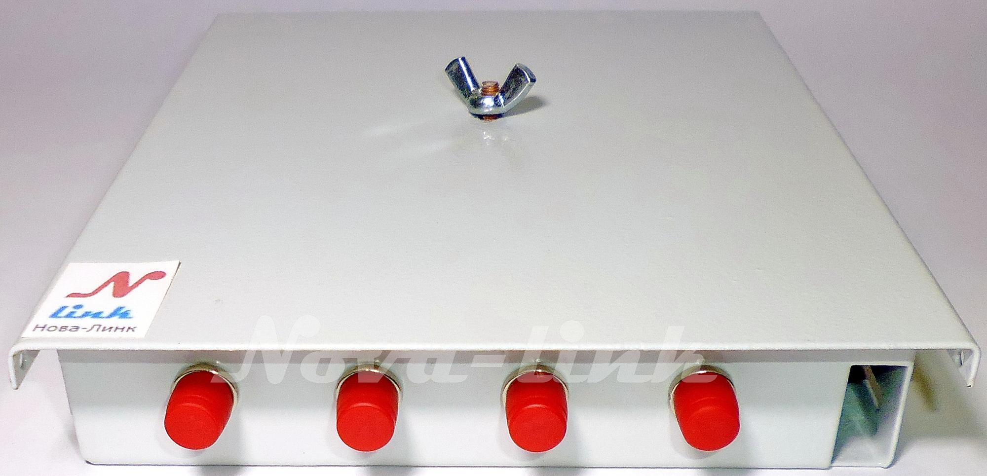 Кросс оптический настенный Предсобран 4FCU крышка, сталь, ложемент, планка 1х4 КРН-4-FC 4 SM FC UPC адаптеры, пиги, гильзы