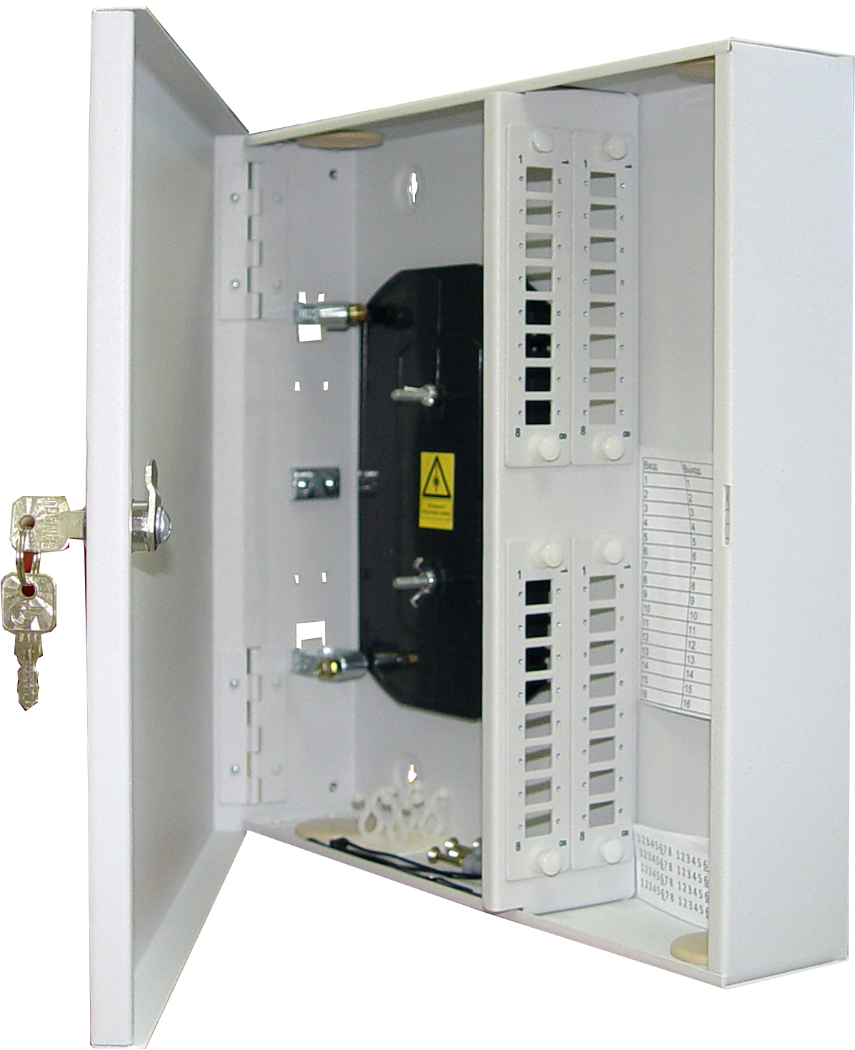 Корпус оптического кросса настенный 32SC(2LC) 1-дв, сталь, кассета, планка 2х24 КРН-48-SC