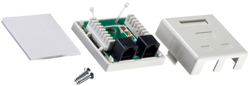 Розетка компьютерная накладная 8P8C RJ45х2 5e UTP Krone белая LX-522