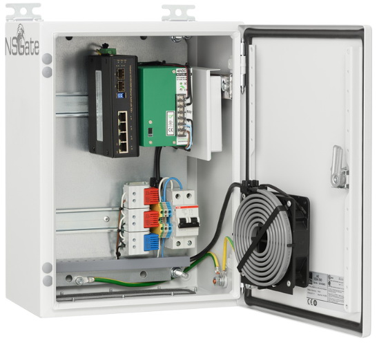 Узел Доступа: Коммутатор 4х10/100/1000PoE120Вт +2SFP НЕупр Бокс 300х400.St БП48В Кросс ВО Обогрев NSBox-242H